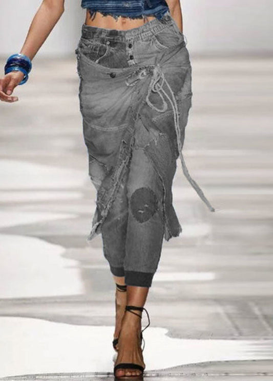 French Blue Asymmetrical Patchwork Denim Skirts Summer LY3949