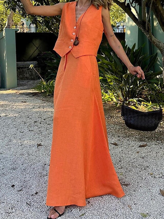 Women's Cotton Linen Sets Skirt Sets Bolero Top Sleeveless