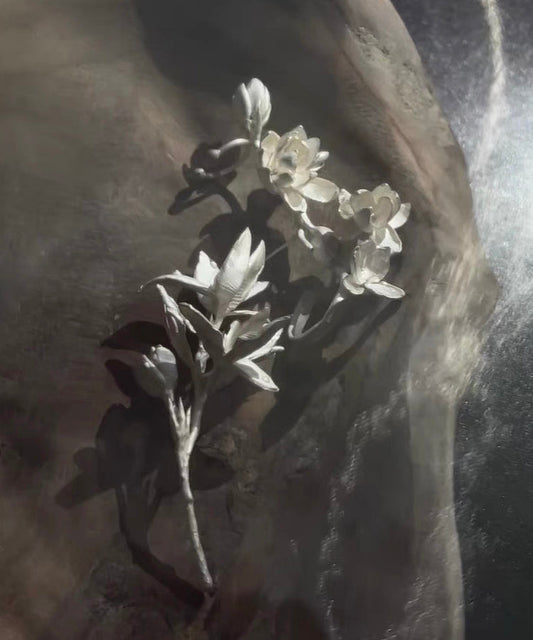 Vintage White Sterling Silver Burn White Jasmine Flower Stud Earrings QQ070