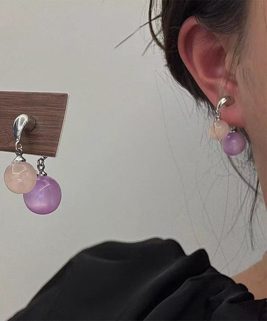 Colorblock Crystal Alloy Tassel Ball Unique Copper Drop Earrings