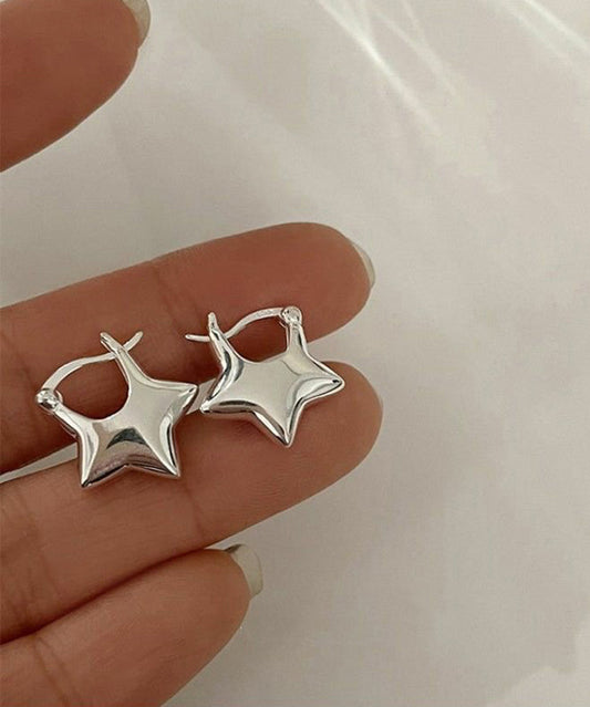 Silver Gold Brief Hoop Sequins Love Earrings Sterling Alloy
