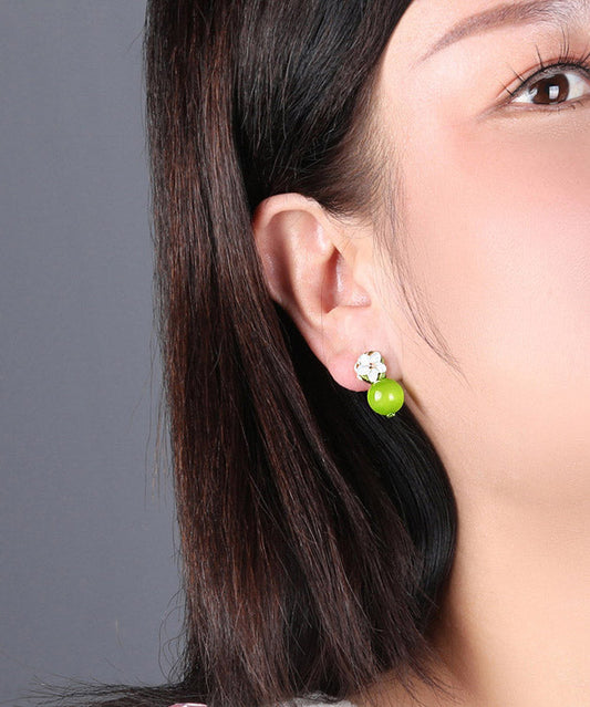 Art Light Green Jade Cloisonne Gem Stone Floral Drip Drop Earrings LY2204