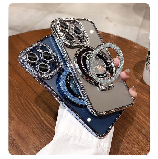 MagSafe) with Rhinestone Stand (Compatible Case Magnetic Transparent Phone