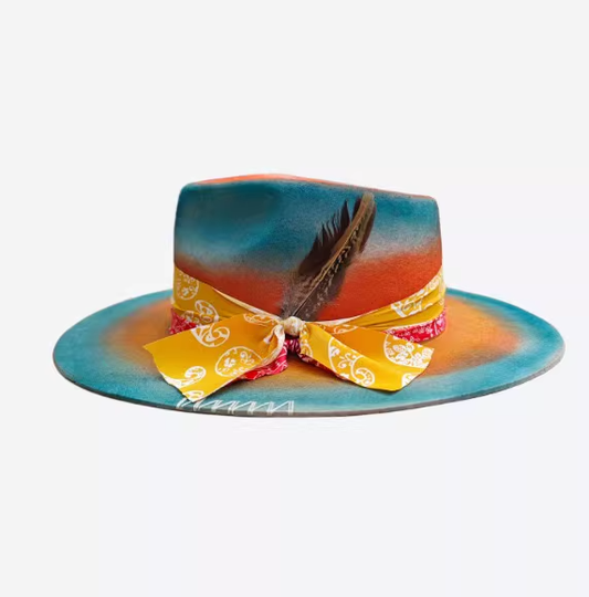 Cowboy Vintage Style Blue Hat Wool Ethnic