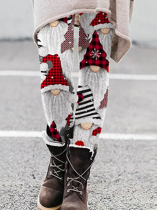 Women's Gray Tight Legging Christmas Hat Printed WK102