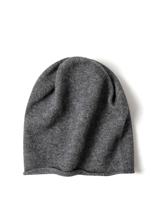 Women Casual Solid Hemming 100%Cashmere Knit Hat BA1068