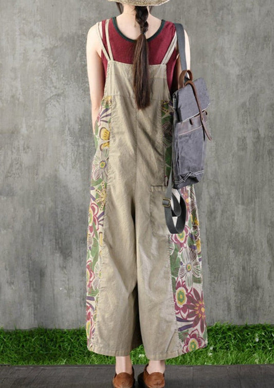 Loose Khaki Patchwork Print Wide Leg Jumpsuits LY3929