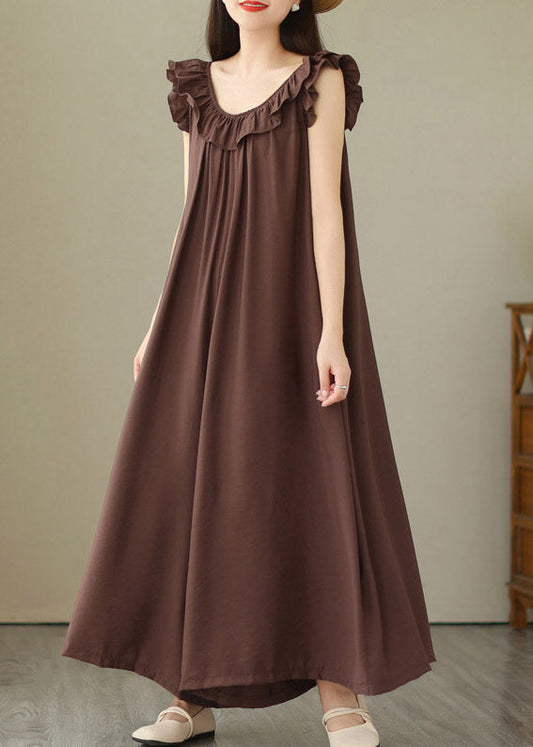 Casual Coffee O-Neck Ruffled Wide Leg Jumpsuit Summer LY2968