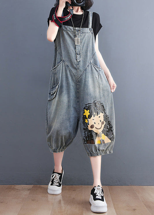 Bohemian Graphic Print Patchwork Denim Lantern Jumpsuits Spring LY1284