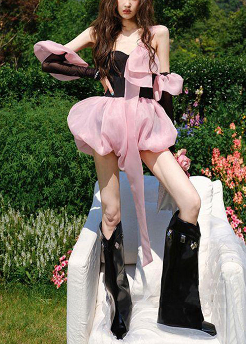 Bow Summer Cotton Jumpsuit Mini Stylish Black Patchwork