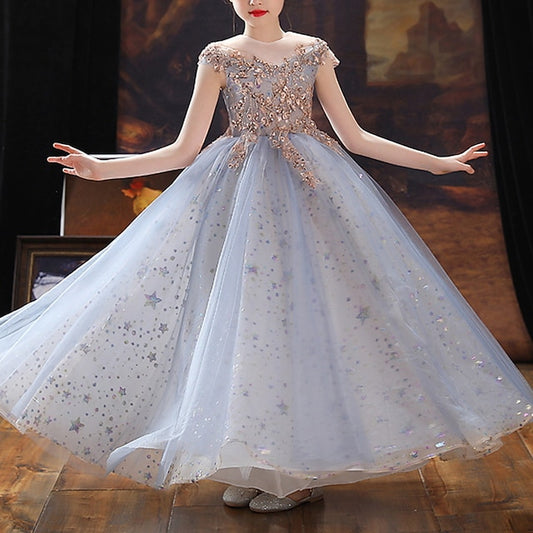 Dress Girl Sequin Party Long Girls' Kids Flower