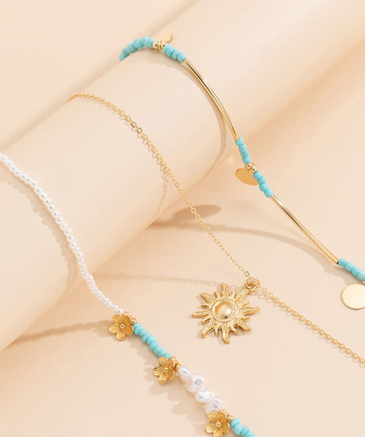 Boho Colorblock Alloy Multilayer Four Piece Set Pendant Necklace RA007