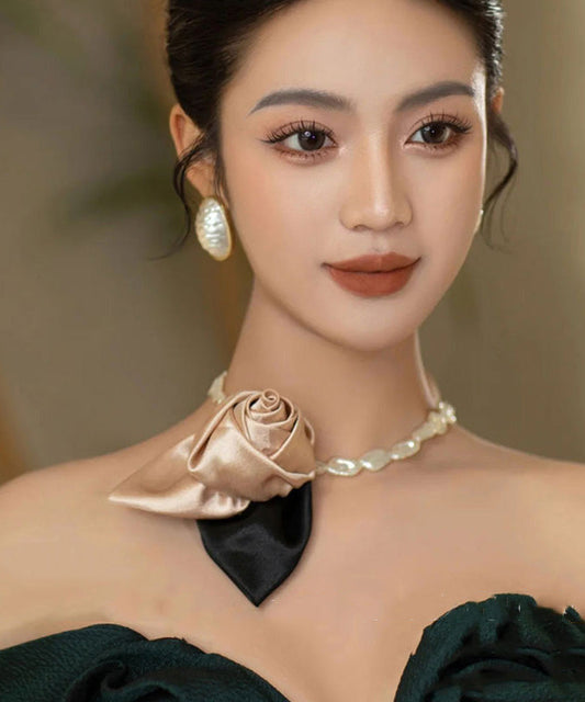 New Red Alloy Pearl Beading Fabric Art Floral Pendant Necklace RG003