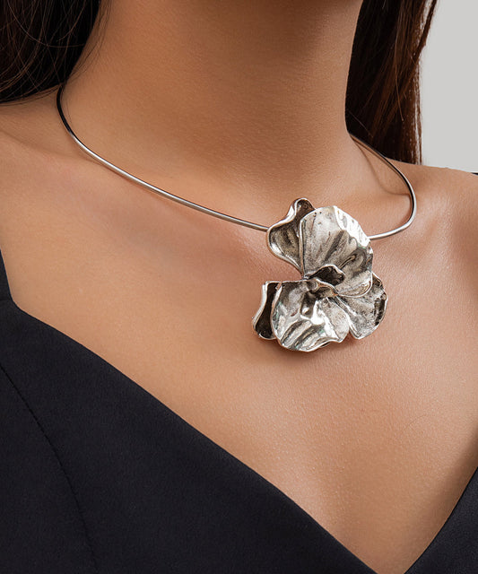 Boutique Gold Metal Wrinkled Floral Pendant Necklace RA036