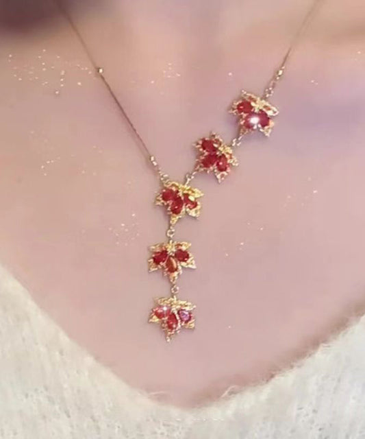 Fashion Red Sterling Silver Overgild Maple Leaf Pendant Necklace RA031