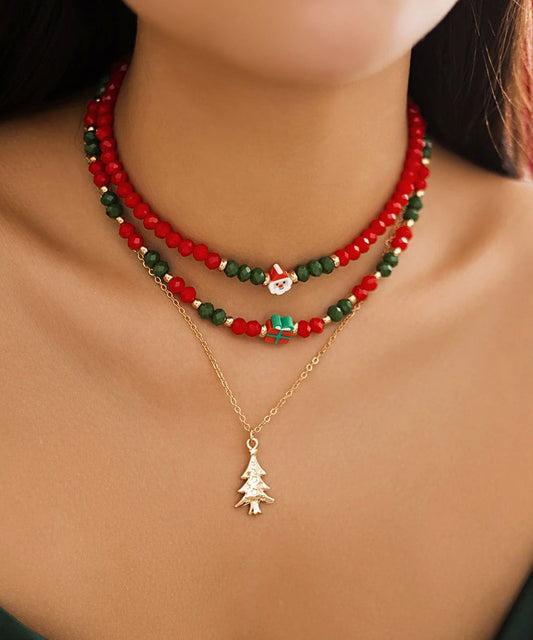 Korean Cute Red And Green Crystal Beaded Clavicle Necklace Fashion RA030