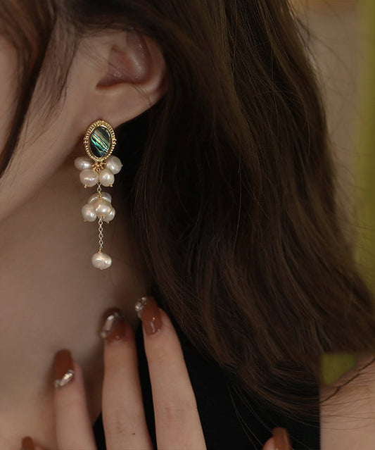 Original Design Gold Sterling Silver Alloy Pearl Tassel Drop EarringsFine Silk Sterling Silver Broken Silver Gypsophila Necklace ET009