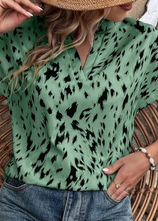 Casual Green O Neck Print Patchwork Silk Blouse Top Batwing Sleeve LY4420