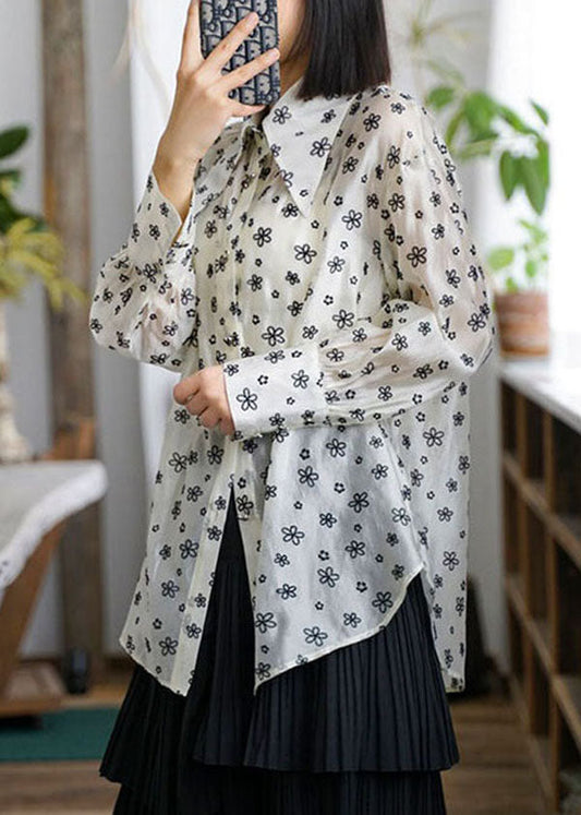 Chic Beige Peter Pan Collar Print Patchwork Chiffon Blouses Long Sleeve LY3843