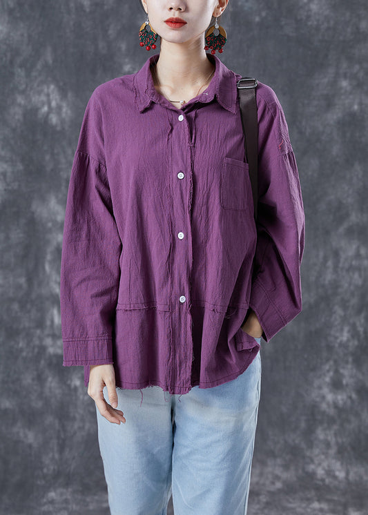 Chic Purple Oversized Patchwork Linen Blouses Summer LY4130