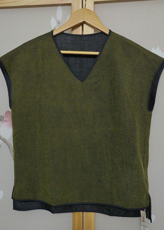 Loose Green V Neck Silk Blouse Top Summer LY2248