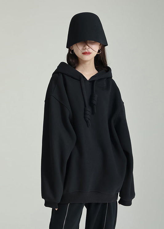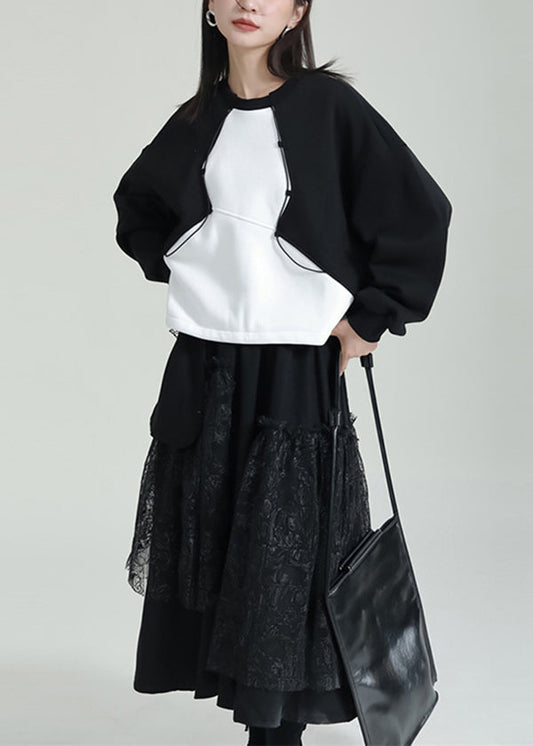 Loose Black O Neck Patchwork Cotton Sweatshirts Tracksuits Fall LY9508