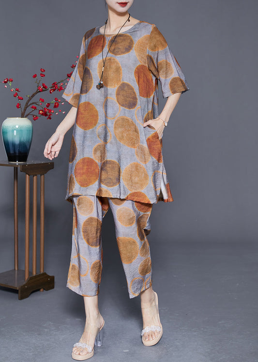 Khaki Dot Print Cotton Two Piece Set Outfits Oversized Summer LY3661