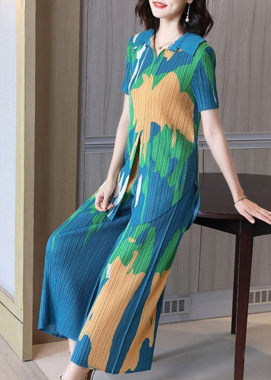 Boho Green Print Wrinkled Two Piece Set Women Clothing Summer LY2798