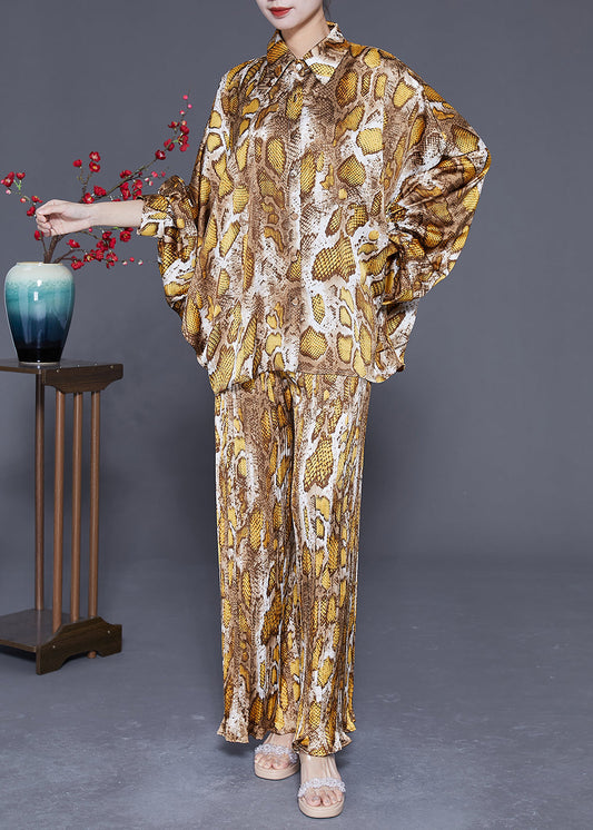 Women Yellow Oversized Print Pleated Chiffon Two Piece Set Spring LY3649