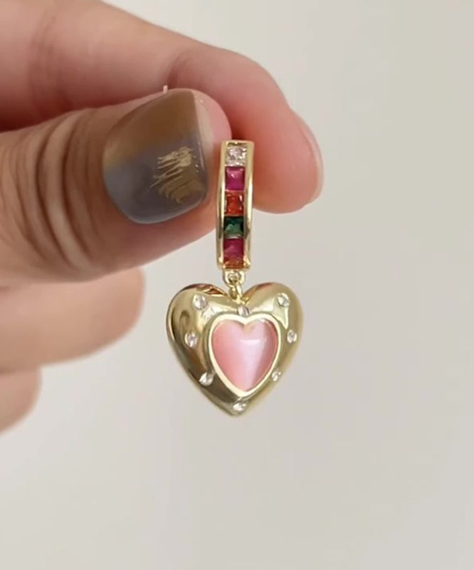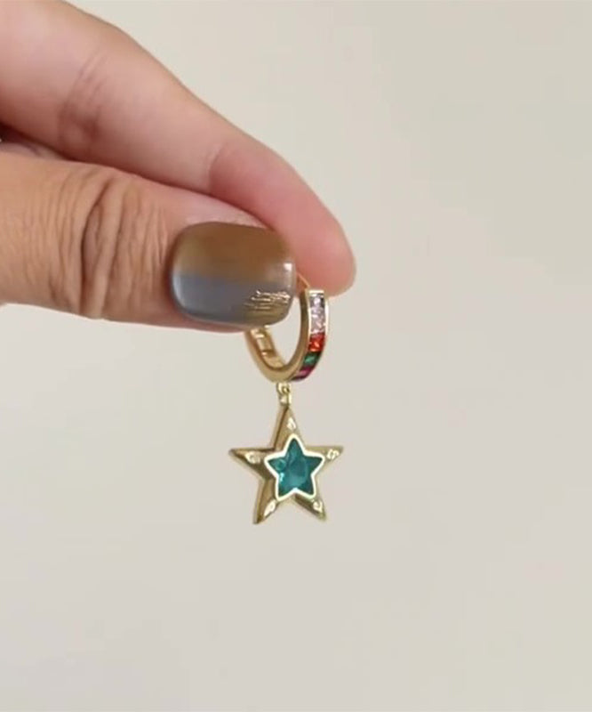 Boutique Gold Copper Alloy Zircon Asymmetrical Srar And Love Hoop Earrings