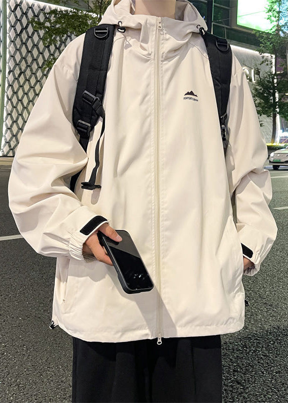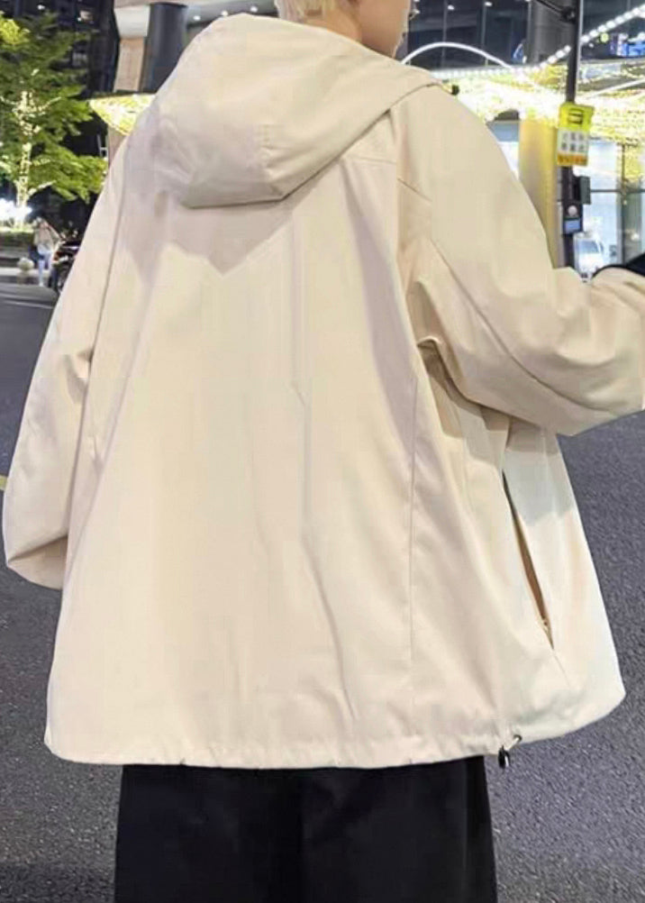 Simple Red Hooded Zippered Solid Cotton Mens Coats Spring