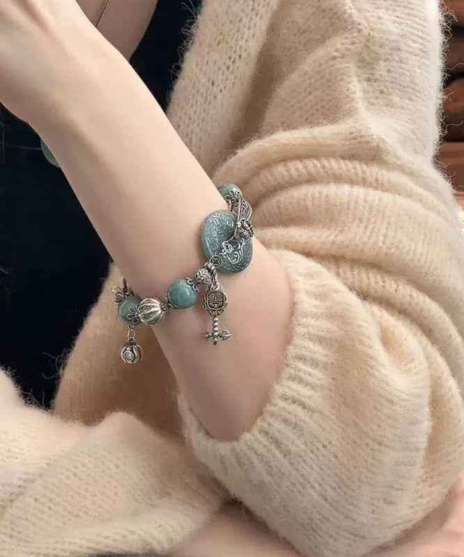 Fine Blackish Green Sterling Silver Jade Ping Buckle Charm Bracelet