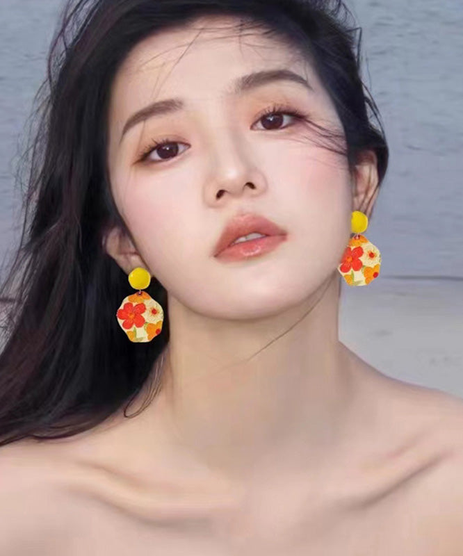 Bohemian Yellow Srerling Silver Floral Drop Glaze Drop Earrings