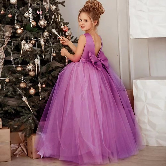Gender: Girls', Age Group: Kids, Style: Sweet, Princess, Occasion: Party, Wedding, Performance, Formal, Kids Apparel: Flower Girl Dress, Party Dress, Fabric: Mesh, Pattern: Solid Color, Sleeve Length: Sleeveless, Design: Mesh, Age: 2-12 Years, 4-12 Years, Season: Summer, Fall, Spring, Look After Me: Hand wash, Elasticity: Inelastic, Fit Type: Tailored Fit, Dresses Type: Sheath Dress, Tulle Dress, Dress Length (cm): Maxi, Neckline: Crew Neck,