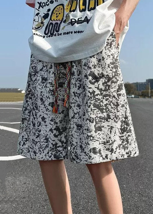 New White Tie Dye Elastic Waist Cotton Men Shorts Summer