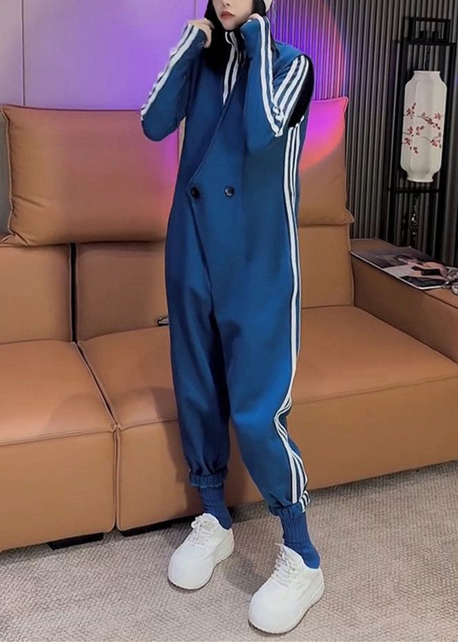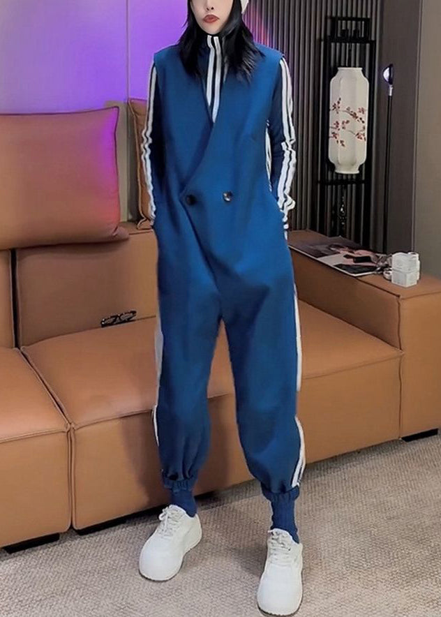 New Grey Striped Button Tops And Jumpsuit Cotton Two Pieces Set Spring YW029