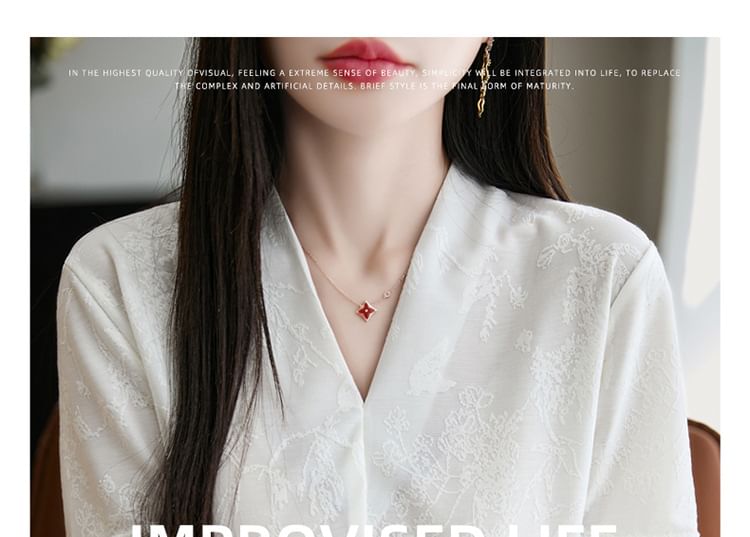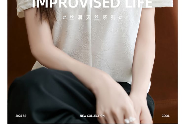 Short-Sleeve V-Neck Floral Embroidered Shirred Top