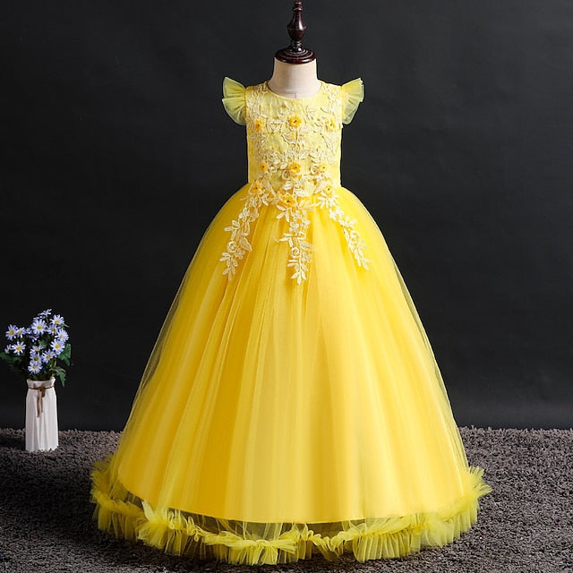 Gender: Girls', Age Group: Kids, Style: Cute, Princess, Occasion: Wedding, Party, Special Occasion, Kids Apparel: Flower Girl Dress, Dress, Fabric: Polyester, Pattern: Jacquard, Sleeve Length: Sleeveless, Design: Mesh, Age: 4-12 Years, Season: Summer, Winter, Fall, Spring, Look After Me: Hand wash, Festival: Children's Day, Dress Length (cm): Maxi, Dresses Type: Pink Princess Dress, Flower Girl's Dress,