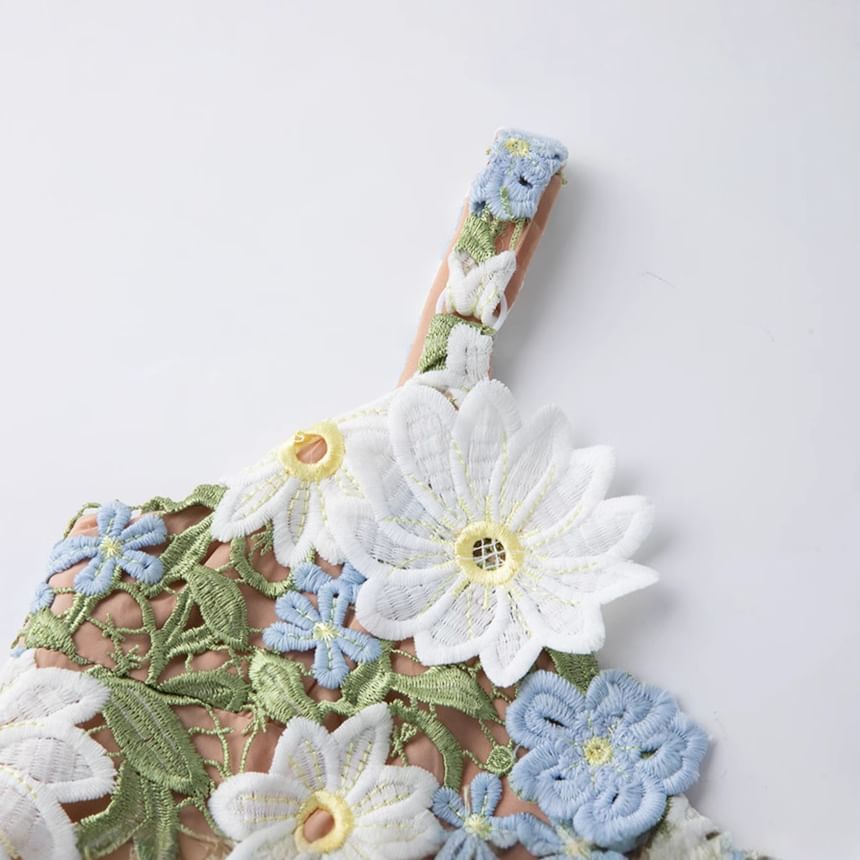 Spaghetti Strap Floral Lace Maxi A-Line Dress