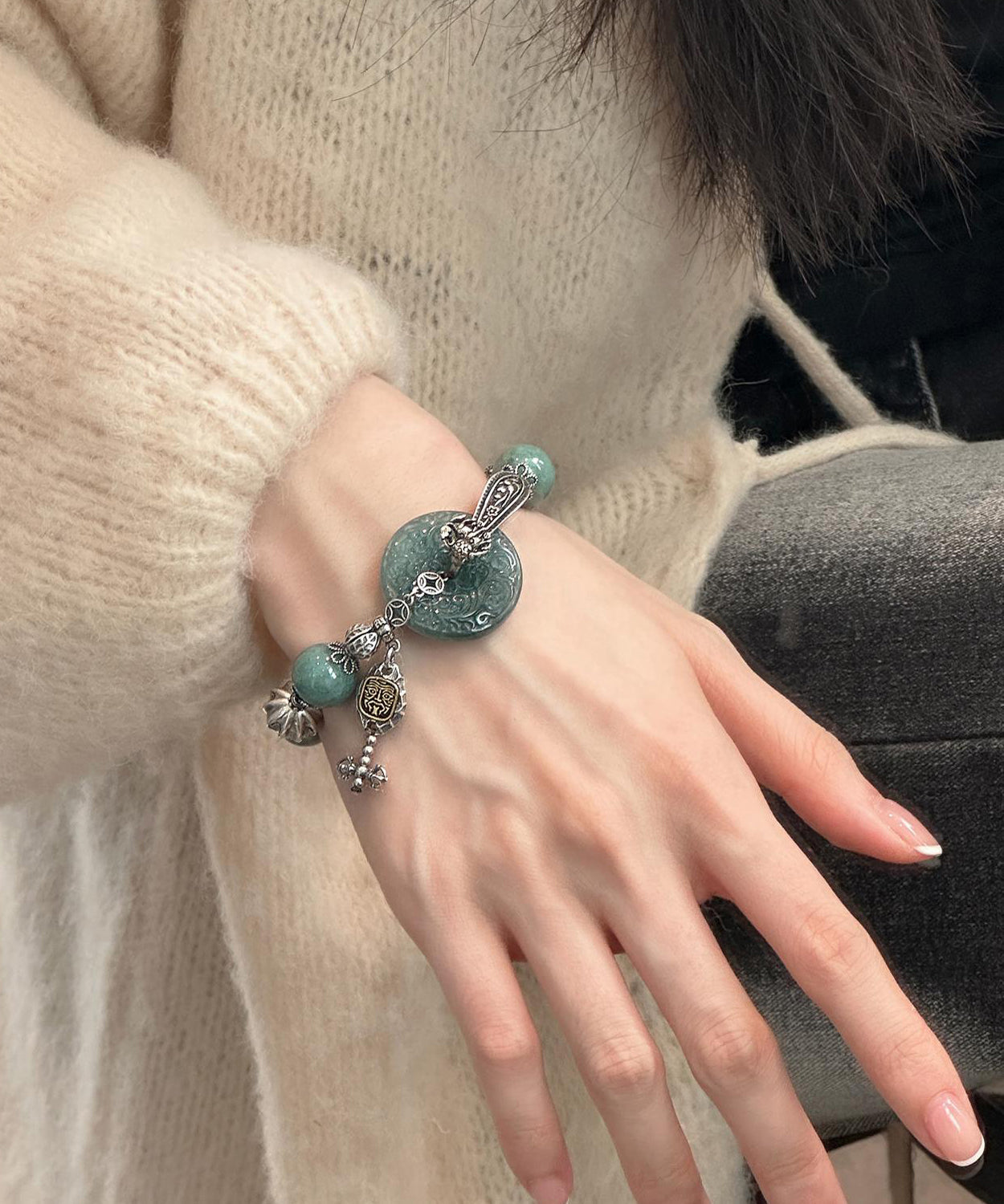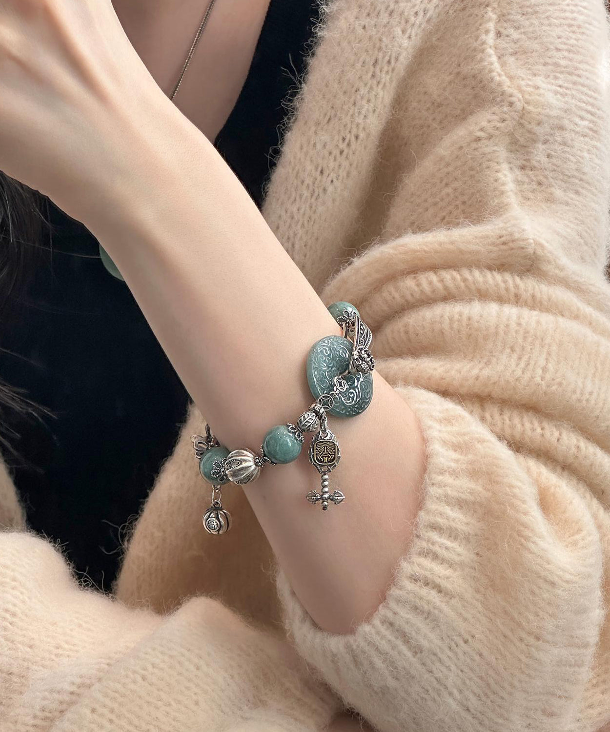 Retro Blackish Green Sterling Silver Jade Butterfly Charm Bracelet