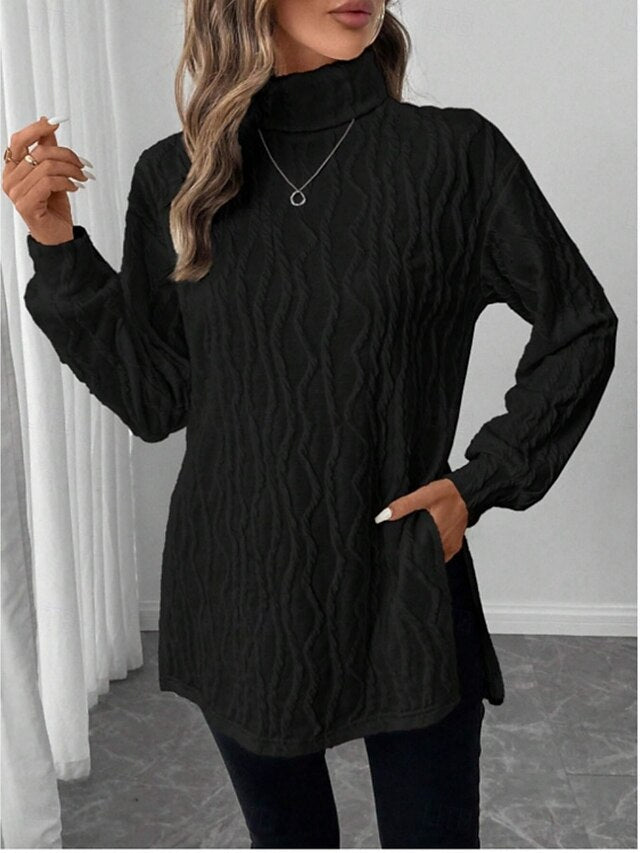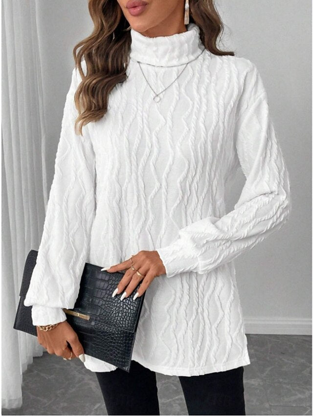 Fabric: Polyester, Textured, Tops Type: Blouse, Gender: Women's, Design: Ruched, Occasion: Daily, Style: Stylish, Casual, Category: Top, Fit Type: Regular Fit, Neckline: Turtleneck, Sleeve Length: Long Sleeve, Elasticity: Stretchy, Look After Me: Washable, Hand wash, Machine wash, Top Length: Long Tops, Pattern: Solid Color, Season: Spring, Winter, Fall,