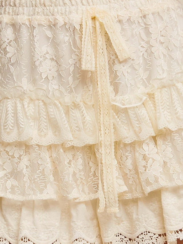 Skirts Type: Lace Skirt, Gender: Women's, Style: Casual, Fashion, Occasion: Date, Daily, Beach, Fabric: Polyester, Design: Pleated, Lace, Elasticity: Micro-elastic, Season: Summer, Spring, Length (cm): S:27;M:27;L:27;XL:27;2XL:27;3XL:27, Hips (cm): S:40.2;M:41.7;L:43.3;XL:44.9;2XL:46.5;3XL:48.1, Waistline: Mid Rise, Fit Type: Regular Fit, Dress Length: Mini, Pants Type: A Line,