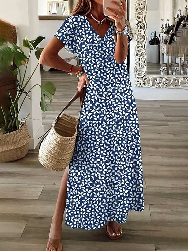Dresses Type: Casual Dress, Sundress, A Line Dress, Fabric: Polyester, Gender: Women's, Design: Print, Occasion: Holiday, Beach, Style: Vacation, Casual, Elegant, Category: Dresses, Fit Type: Regular Fit, Dress Length Type: Maxi Dress, Neckline: V Neck, Sleeve Length: Short Sleeve, Elasticity: Stretchy, Look After Me: Machine wash, Dress Length: Maxi, Pattern: Graphic, Floral, Season: Summer, Spring,