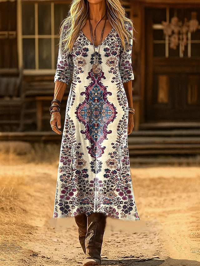 Dresses Type: Sheath Dress, Fabric: Polyester, Gender: Women's, Design: Print, Occasion: Date, Daily, Going out, Style: Party, Casual, Boho, Fit Type: Loose Fit, Dress Length Type: Maxi Dress, Neckline: V Neck, Sleeve Length: Long Sleeve, Elasticity: Inelastic, Look After Me: Machine wash, Pattern: Graphic, Floral, Paisley, Season: Fall, Winter, Spring,