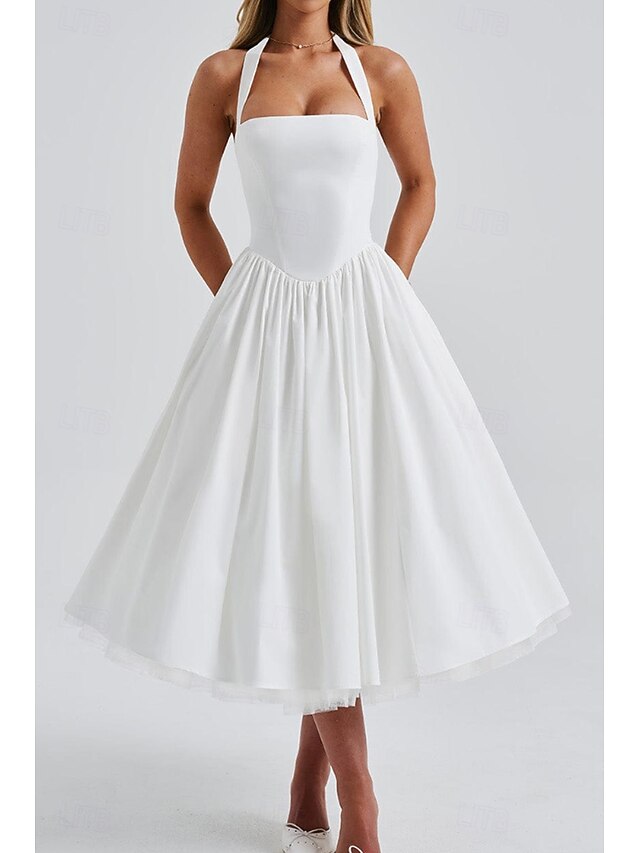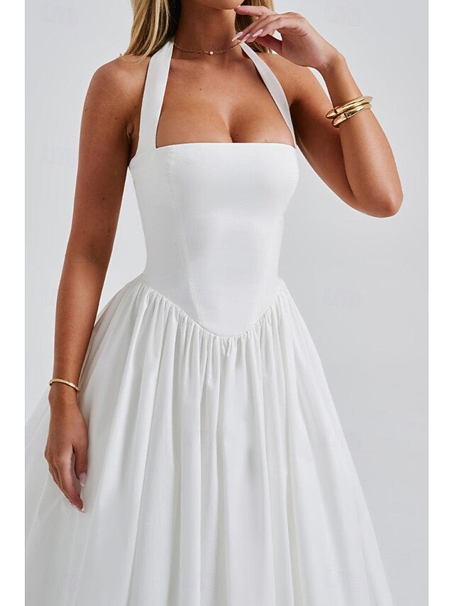 Dresses Type: Graduation Dress, White Dress, Fabric: Polyester, Gender: Women's, Design: Cold Shoulder, Ruched, Occasion: Graduation, Holiday, Going out, Birthday, Style: Fashion, Modern, Fit Type: Regular Fit, Dress Length Type: Midi Dress, Neckline: Halter Neck, Sleeve Length: Sleeveless, Elasticity: Micro-elastic, Look After Me: Hand wash, Pattern: Plain, Season: Summer,