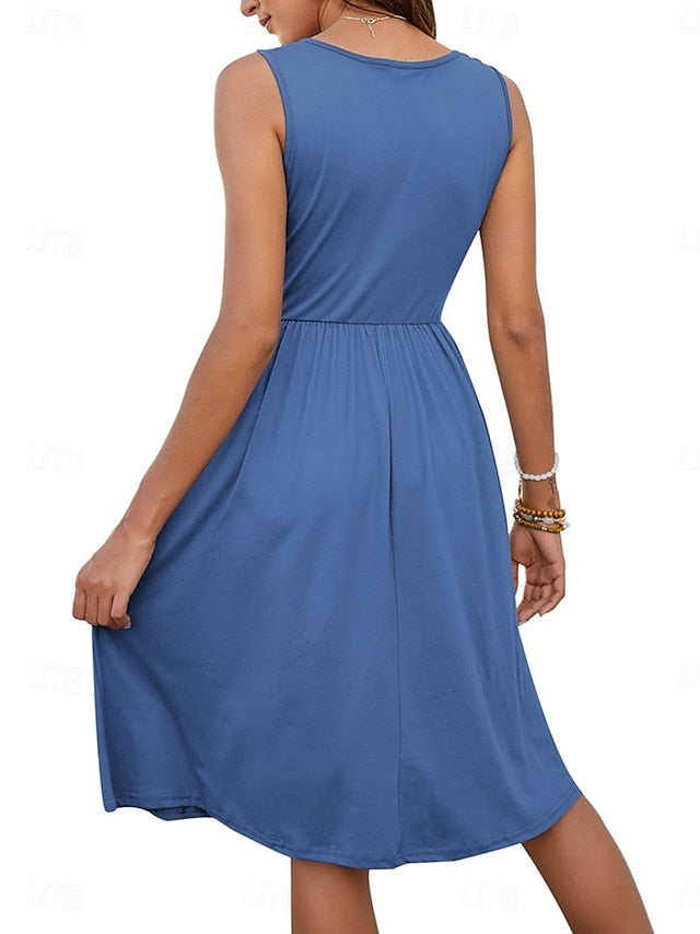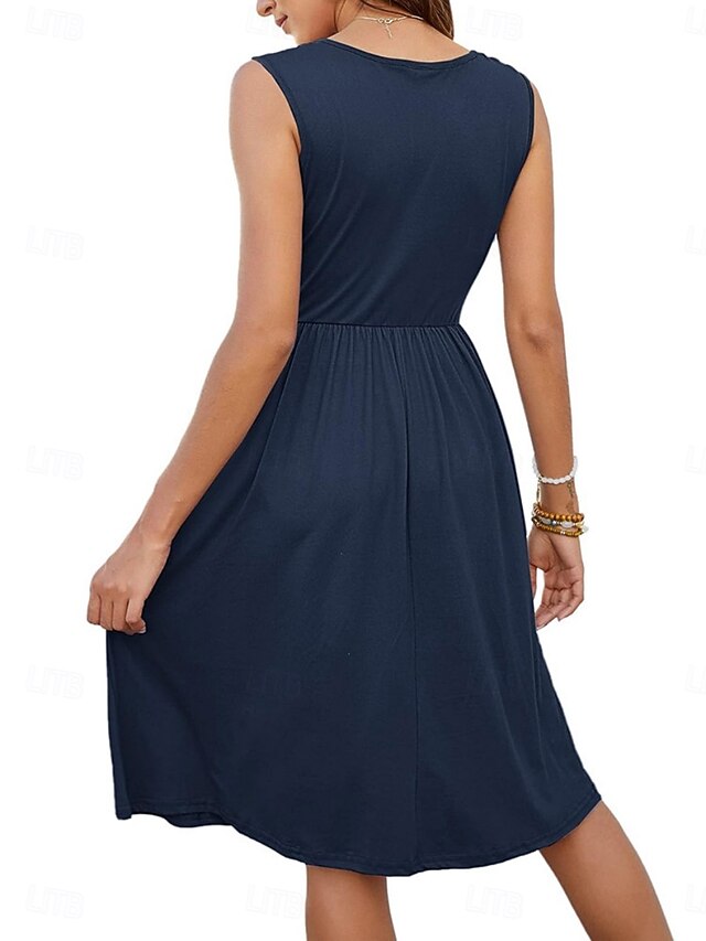 Dresses Type: Summer Dress, Fabric: Polyester, Gender: Women's, Design: Pocket, Buttons, Occasion: Daily, Size Suggestion: standard size, select your usual size, Style: Casual, Fit Type: Regular Fit, Dress Length Type: Mini Dress, Neckline: U Neck, Sleeve Length: Sleeveless, Elasticity: Inelastic, Look After Me: Hand wash, Machine wash, Pattern: Solid Color, Season: Summer,