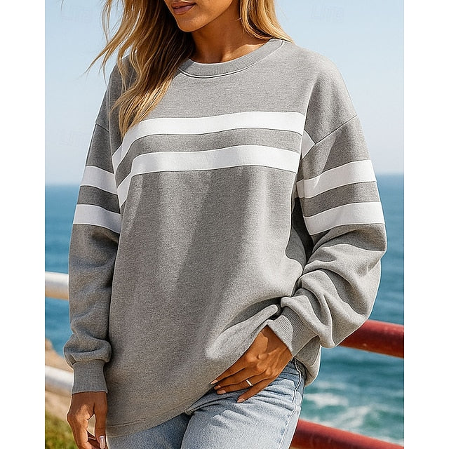Gender: Women's, Sports Clothing Sub Category: Casual Tops, Pullover Sweatshirt, Clothing Type: Top, Activity: Outdoor, Travel, Sports, Occasion: Sports, Athleisure, Gyms, Workout, Season: Fall, Fit Type: Loose Fit, Function: Lightweight, Fabric: Cotton, Sleeve Length: Long Sleeve, Neckline: Crew Neck, Pattern: Striped, Look After Me: Wet and Dry Cleaning, Washable, Bust (cm): S:120;M:125;L:130;XL:135, Length (cm): S:69;M:71;L:73;XL:75,