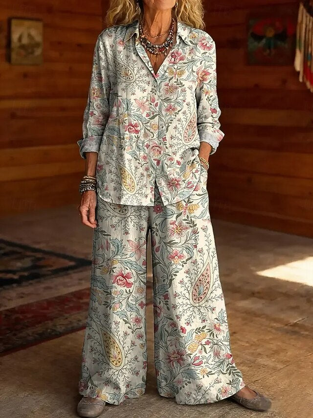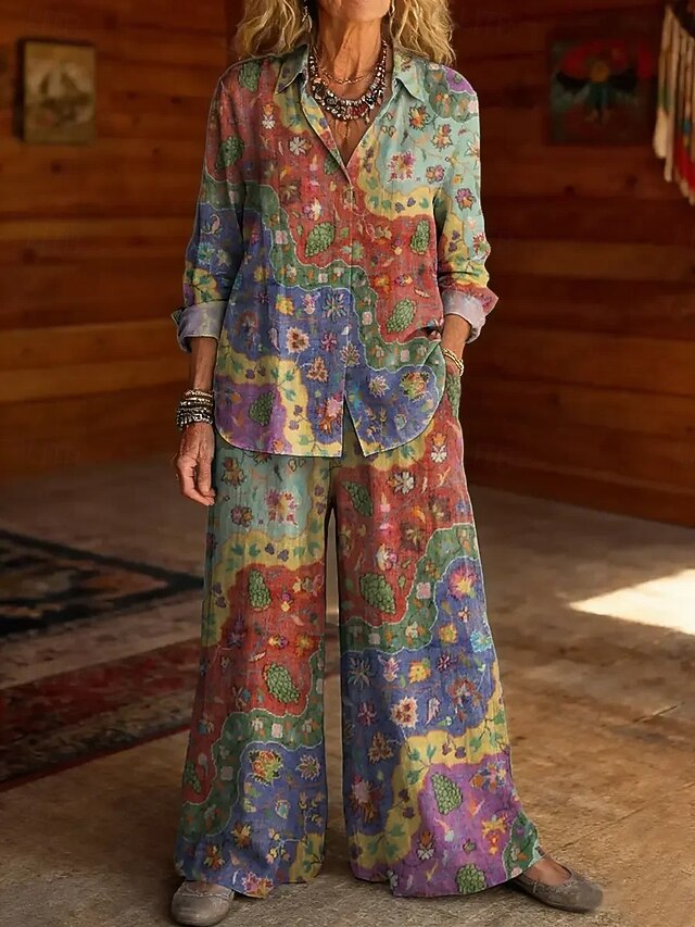 Gender: Women's, Accessories not included: Accessories not included, Style: Stylish, Daily, Occasion: Beach, Casual, Daily, Vacation, Tops Type: Bolero Top, Two Piece Sets, Pants Sets, Neckline: Shirt Collar, Fabric: Polyester, Design: Print, Sleeve Length: Long Sleeve, Elasticity: Inelastic, Look After Me: Wash with similar colours, Hand wash, Machine wash, Pattern: Graphic, Floral, Season: Spring, Summer,
