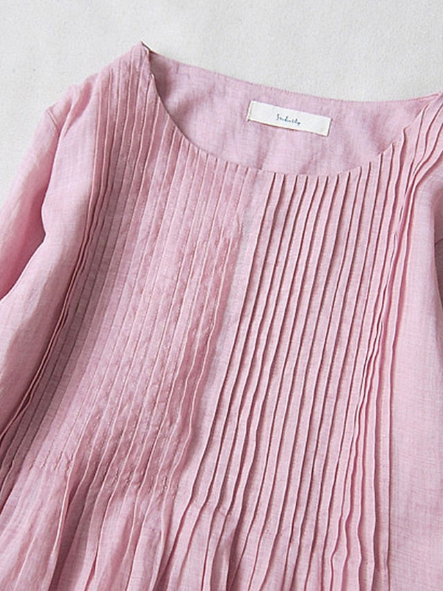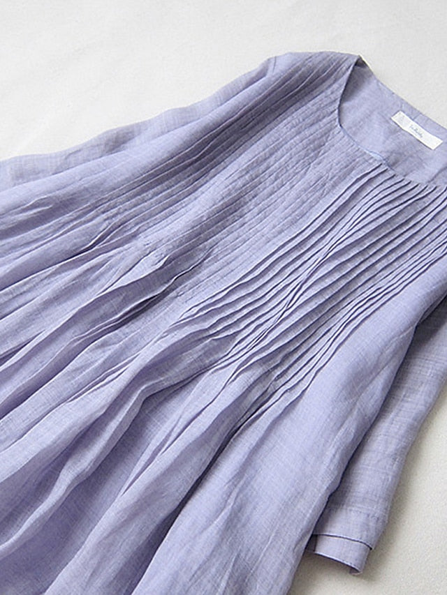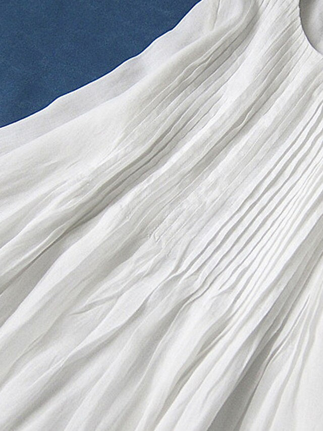 Dresses Type: Cotton Linen Dresses, White Dress, Swing Dress, Casual Dress, Fabric: Cotton, Cotton Blend, Linen texture style, Gender: Women's, Design: Pocket, Ruched, Occasion: Daily, Outdoor, Style: Basic, Casual, Fit Type: Loose Fit, Dress Length Type: Midi Dress, Neckline: Crew Neck, Sleeve Length: Short Sleeve, Elasticity: Micro-elastic, Look After Me: Machine wash, Pattern: Plain, Season: Spring, Summer,