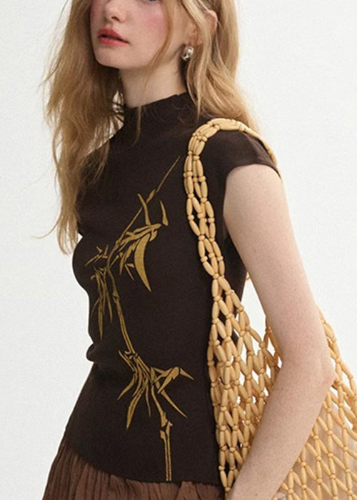 French White Stand Collar Print Cotton Tank Tops Summer